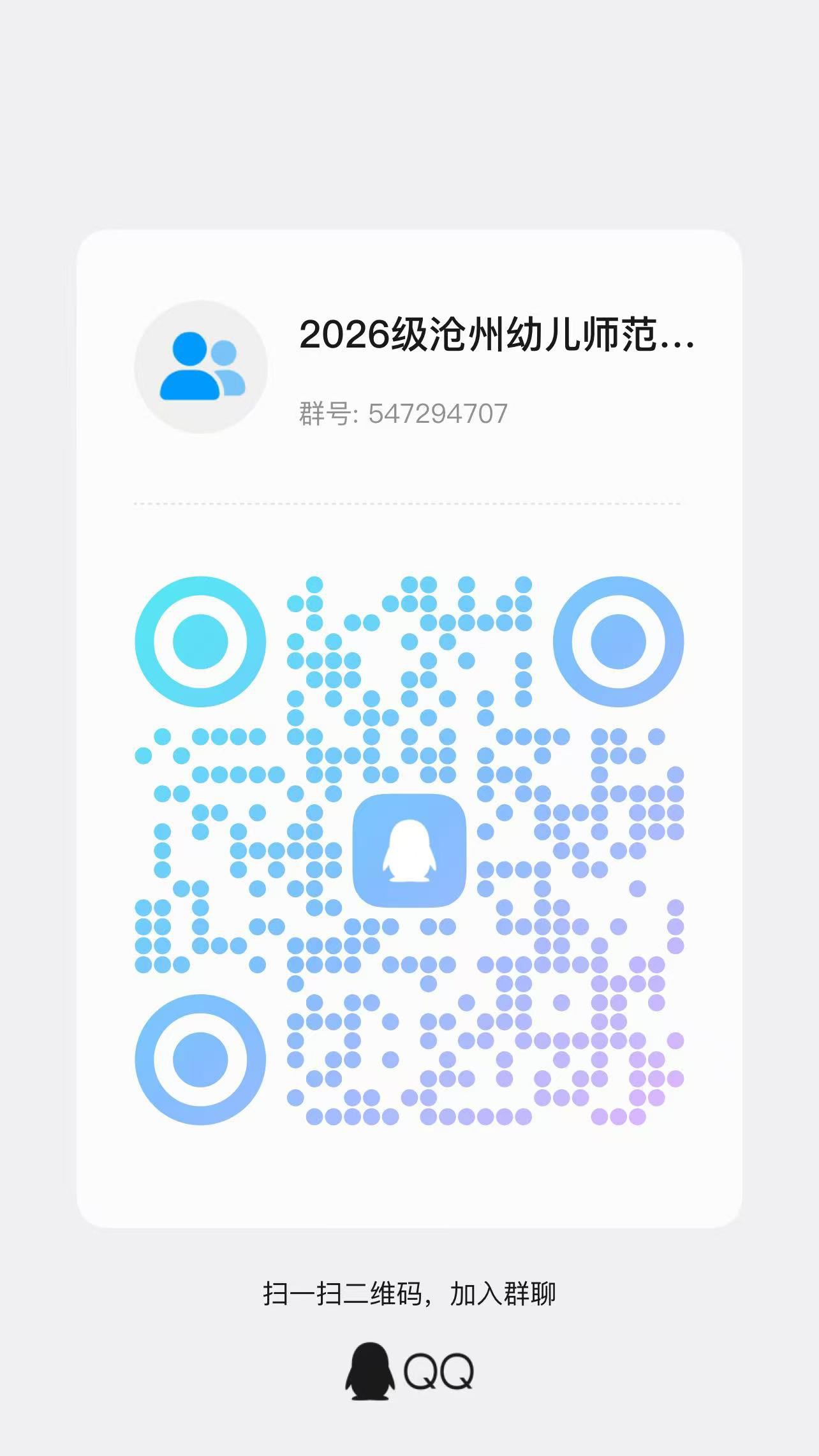 各位同学尽快使用QQ扫描下方二维码加入群聊(群号:547294707)。